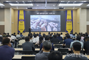 녹십자수의약품(대표이사 나승식)은 지난 9일 대전 호텔ICC에서 국내 최초 알약 제형 모돈 발정동기화 호르몬 ‘제스탭 정(Zestab Tab)’ 론칭 세미나를 열고 본격적인 시장 확대에 나섰다. 이날 행사에는 고객 농가와 관련 종사자 100여명이 참석해 신제품에 대한 높은 관심을 보였다. ‘제스탭 정’은 알트레노제스트 제제 알약 제형의 모돈 발정동기화 호르몬제로, 모돈의 기호성과 정량 섭취율을 개선한 것이 특징이다. 사료 위에 간편히 투여할 수 있어 농가의 노동력을 줄이고 생산성을 높이는 데 기여할 것으로 기대된다. 또한 기존에 액상으로 급이할 때는 주입기로 투여하기 때문에 PRRS 등 질병 전파의 위험성도 있었지만 ‘제스탭 정’은 개별 급이를 하는 방식이기에 위생 측면에서도 더 안전하다. 실제 농장 실험 결과, 모돈 그룹에서 발정률이 최대 98%에 달했으며, 액상 제제와의 생물학적 동등성 시험에서도 동일한 효능을 입증했다. 또한 개체별 알약 급여 방식으로 주입기 사용 시 발생할 수 있는 질병 전파 위험을 줄이고 위생성을 확보했다. 세미나 후반부에는 후보돈 도입시 발정동기화를 통한 교배 시점 조절, 설사 등으로 인한 번식 지연 예방 등 다양한 활용 방안이 공
