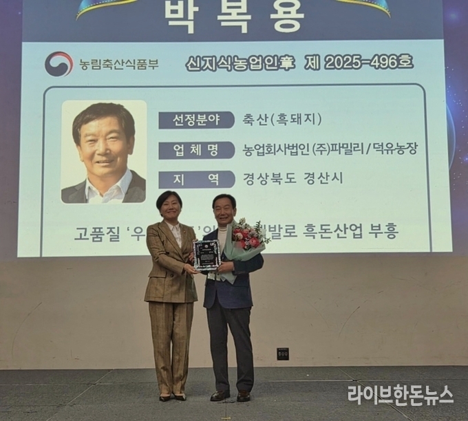 이번 ‘신지식농업인’ 수상자 박복용 대표는 경북 경산에서 30여 년간 양돈업에 종사하며 축적한 경험과 기술을 바탕으로 생산성 향상과 농장 운영 혁신에 힘써왔다. 특히 양돈 생산 기반을 바탕으로 가공 등 6차 산업화 모델을 접목해 농가소득 증대와 지역 농업 발전에 기여한 점이 높은 평가를 받았다.