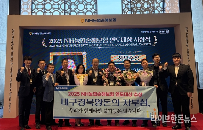 대구경북양돈농협(조합장 이상용)이 최근 열린 ‘2025년도 NH농협손해보험 연도대상’ 시상식에서 사무소 부문 최우수상을 수상하며 우수한 경영 실적과 보험사업 경쟁력을 증명했다.